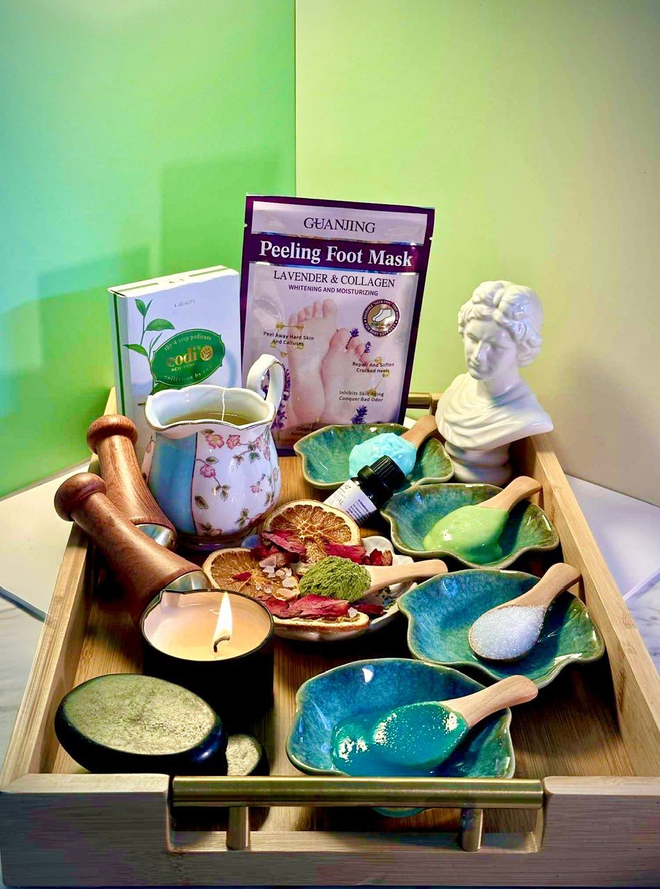 12-minute massage, 1 FREE Drink (Water / Soft Drinks / Mocktails / Cocktails) - Organic green tea soak, matcha mint bath bomb, matcha sugar scrub and sea salt blend, therapeutic matcha-infused soak, massage butter, kasa massage wands, hot stone therapy, white tea massage, collagen socks, and matcha nourishing mud mask. Choice of Callus Treatment or Paraffin Wax.Cash: $68.00Card: $69.36Gel Cash: $83.00Gel Card: $84.66 -