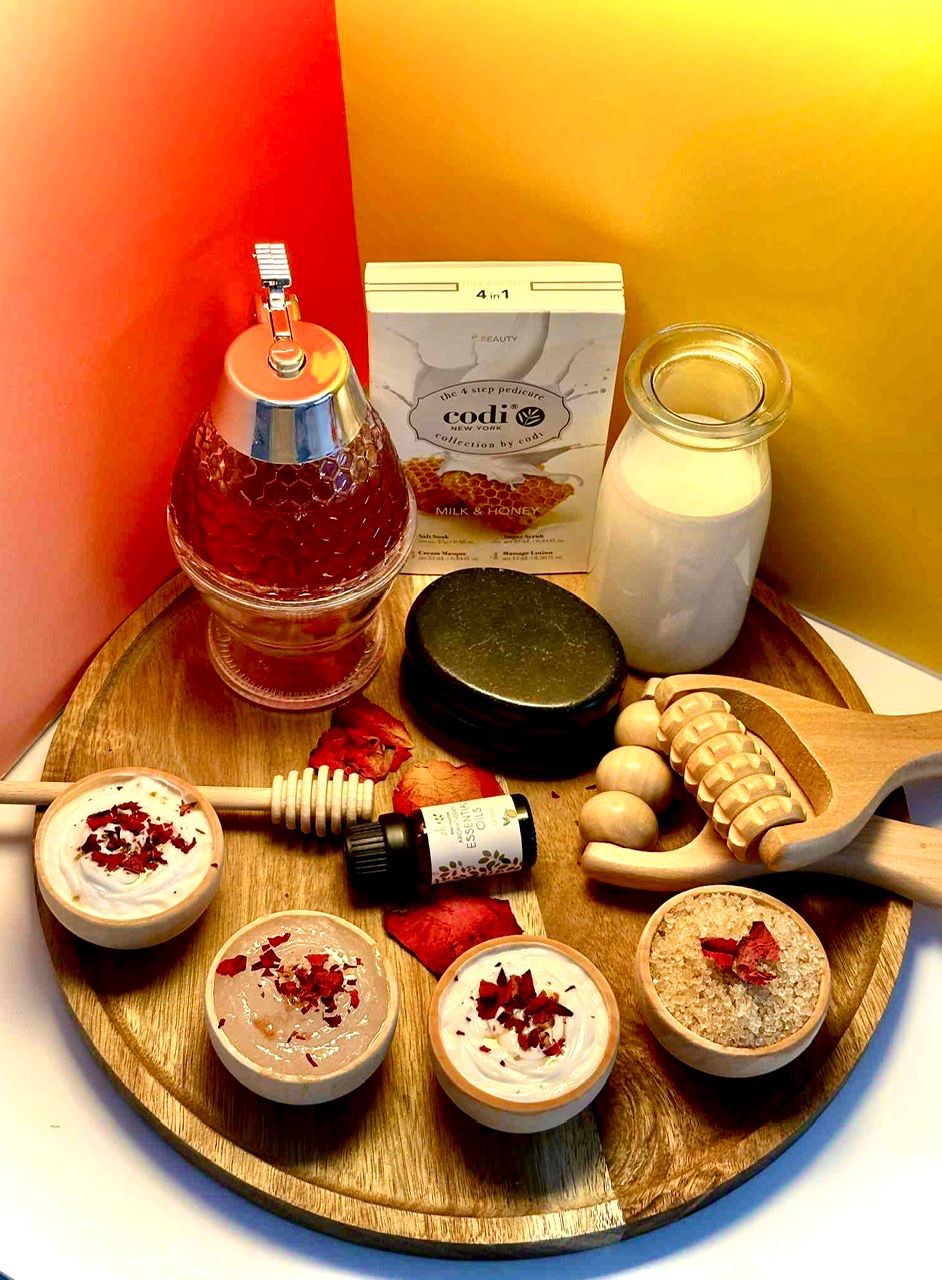 8-minute massage, 1 FREE Drink (Water / Soft Drinks / Mocktails) - Organic honey & milk bath with sea salt, honey & oat milk sugar scrub, organic honey massage treatment, spa steamer, warm blend of jojoba and soybean oils, wrapped in organic honey for irresistibly soft, radiant skin.Cash: $58.00Card: $59.16Gel Cash: $73.00Gel Card: $74.46 -